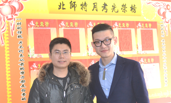 左圖:張弛,美術(shù)文科生,校考結(jié)束后入讀。3個(gè)月考了590分,提高110分,考入清華美院。右圖:孫邇溪,應(yīng)屆文科生,高三在西城某普通高中,到我校插班,跟張弛同屆。高考成績594分,獲得香港教育學(xué)院獎(jiǎng)學(xué)金,以顏值和言論見長,是該校人氣校友。