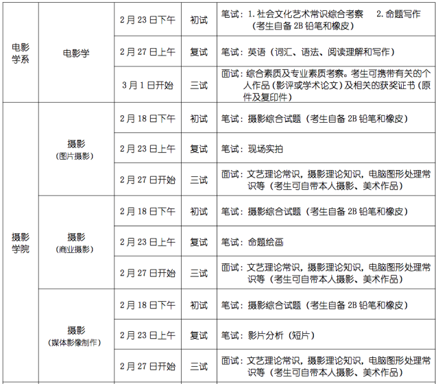 專業:圖片攝影、商業攝影、媒體影像制作、影視攝影與制作、電影學、數字電影技術、照明藝術、光環境設計、網絡媒體設計