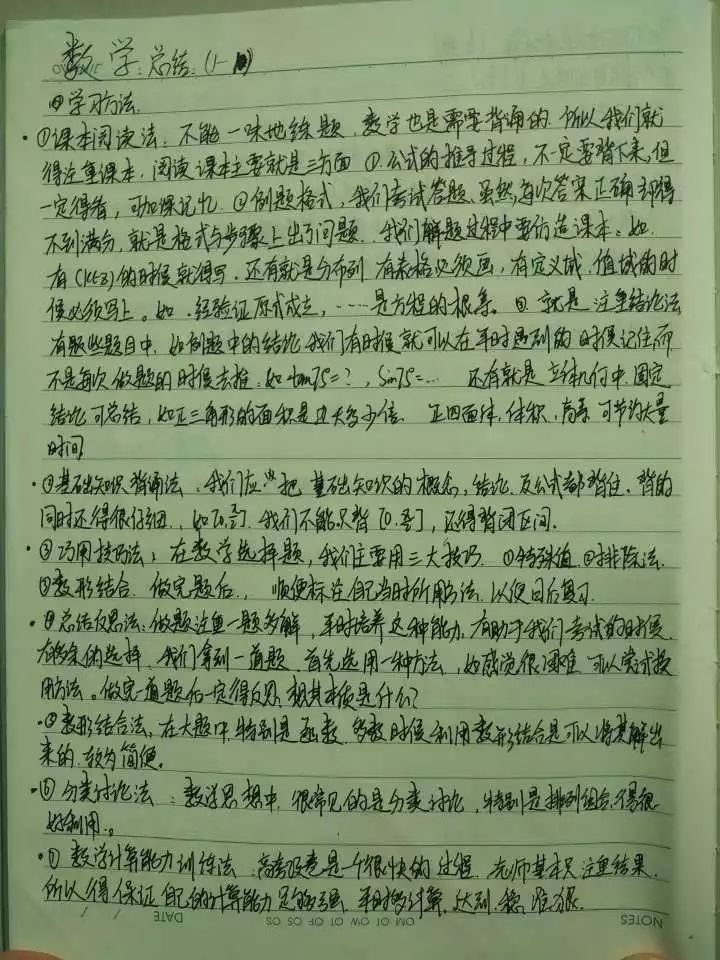 理科類學習方法是很類似的,所以遇到相同的問題我就一起談了。首先,先看一張圖片,是當時我自己總結給自己的一些數學的學習方法: