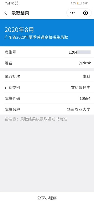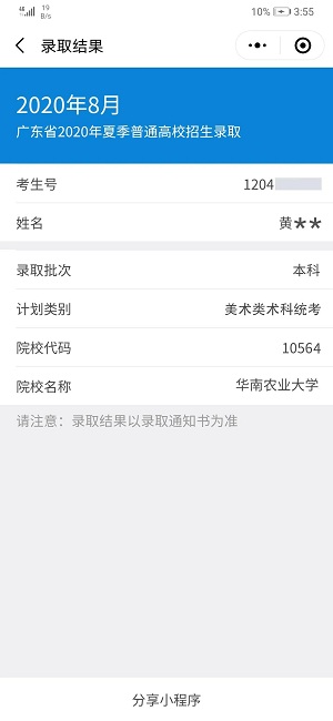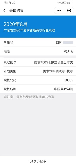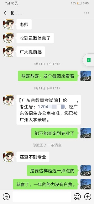 錄取正酣,捷報頻傳,新視角的學子繼盧俊瑋同學被中山大學錄取,又有幾十位同學被汕頭大學、暨南大學、華南師范大學、深圳大學、華南農業大學、四川師范大學、中國美術學院、廣州美術學院等高校錄取。
