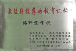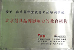 ●學(xué)校被北京晚報、北京晨報、京華時報、新京報、新浪網(wǎng)等媒體評選為“京城最具實力的教育培訓(xùn)機構(gòu)”、“京城最值得信賴的教育培訓(xùn)機構(gòu)”