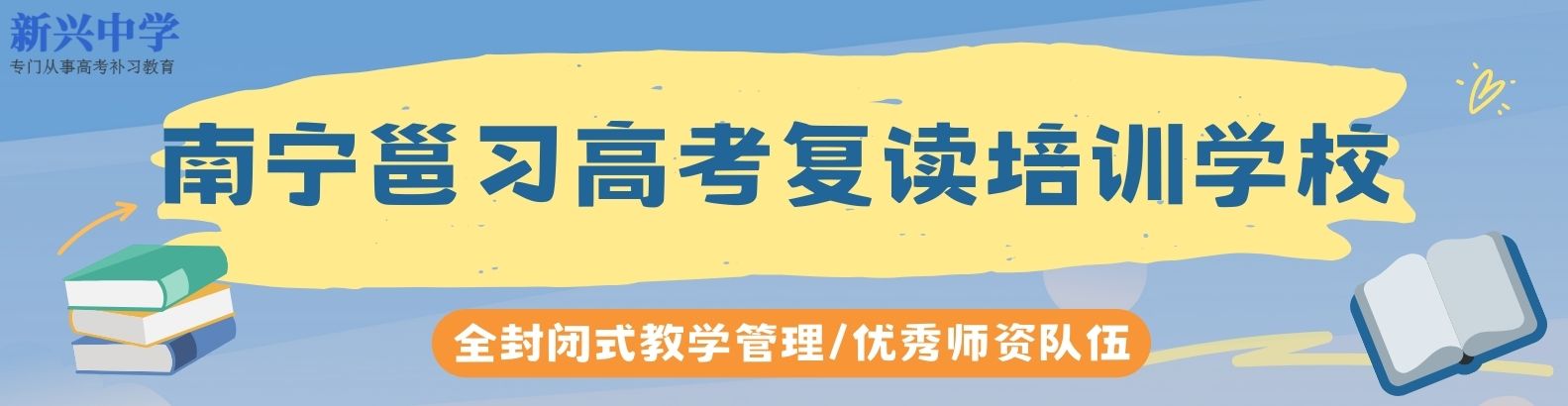 【關于我們】學校前稱是原邕寧高中高考復讀學校(新興中學),是高考復讀的風水寶地,人杰地靈,曾培養一大批學子考上清華大學、北京大學等985和211大學。2020年學校改制為南寧市邕寧區高考復讀學校,傳承原新興中學的辦學理念,以“一切為了學生發展”為辦學宗旨,深化教學改革,開展“新課程、新高考、新教材”三新研究,強化教師的責任擔當,服務學生意識。【學校管理】1、專配年輕優秀教師擔任專職班主任(相當于大學的政治輔導員),全天候陪伴及心理院導運動鍛煉指導。2、專配生活服務人員,負責宿舍的清潔衛生及衣物清洗。3、全封閉式教學管理。【辦學理念】為學生盡責【教學教風】啟發 善誘 探究【校訓校風】尊師 篤學 勤奮【辦學宗旨】為學生發展【學校師資】【學校環境】【學員風采】...... << 更多 >>