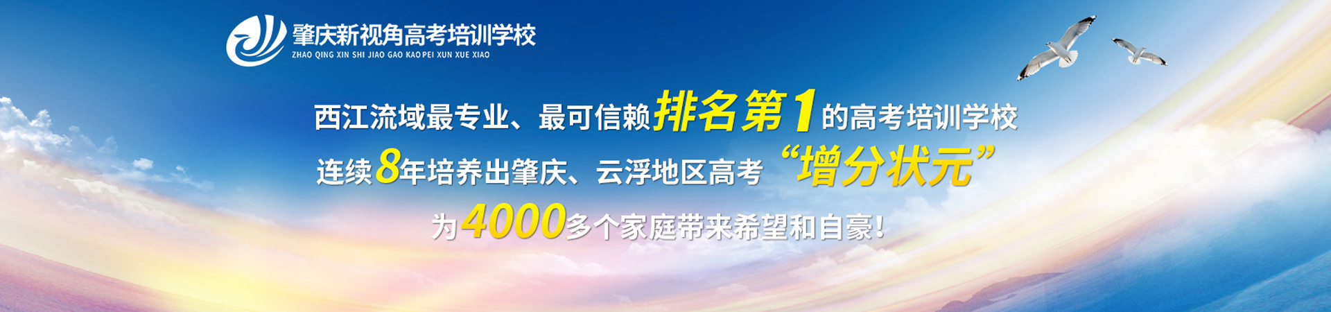肇慶新視角高考培訓學校,是肇慶市高要區教育局、民政局審批成立并主管的專業高考輔導機構和專業高考復讀學校。創辦于2008年,至今已辦學8年。現為肇慶市規模最大的復讀學校,2008年以來,已有近4000名有志于高考的同學從這里走向了理想的大學,書寫了人生新的篇章,給四千多個家庭帶來了歡笑和自豪。