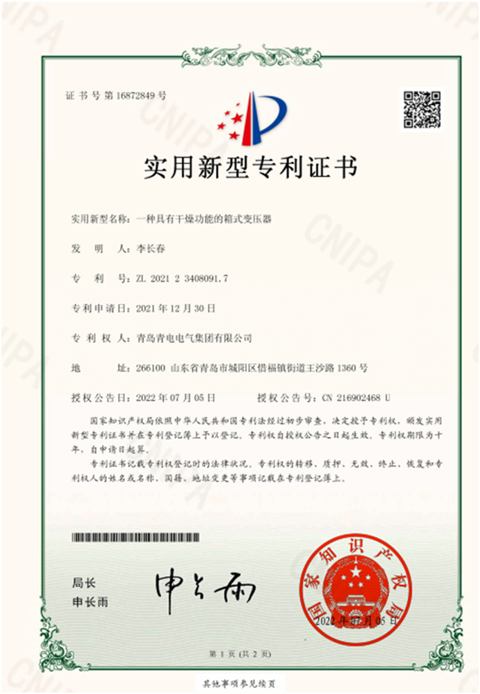 一種具有干燥功能的箱式變壓器